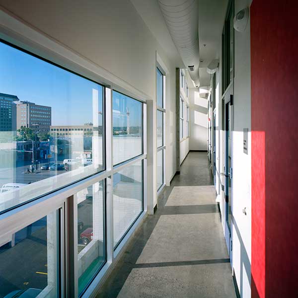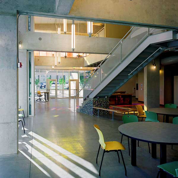 The Resource Center is a LEED Silver-rated building in accordance with the US Green Building Council. As such, its construction focused on the implementation of sustainable site development, water conservation, energy efficiency, material selection and indoor air quality. Some of its progressive features include a rainwater collection system, active and passive solar systems, sealed concrete floors, sheet linoleum floors and other low maintenance finishes.