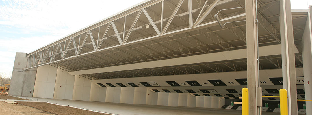 Each phase of the tilt wall concrete project produced a range that accommodates 20 shooting stations at distances from 3 to 50 yards. Each included an Action Target System with 360-degree turning targets, two running-man targets and a 114 foot wide Meggitt bullet trap system, range line painting and sacrificial plywood bullet deflectors mounted on ballistic steel plating baffles. The site includes a control booth, generator yard and a 44,000 cubic yard, 20 foot tall earth berm for safety purposes and sound reduction. Additionally, the Journeyman team worked in partnership with the project landscape architect to save existing trees, further assisting with sound absorption, while creating a pleasing outdoor aesthetic.