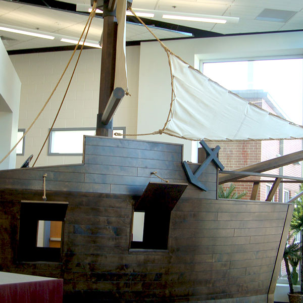 The school consists of 3rd – 5th grade classrooms, science classrooms, special education classrooms, collaboration areas with skylights above, library with custom made pirate ship reading area, administration area, counseling, life skills and flex rooms.